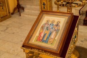 3-й и 6-й часы, песнопения, ектении и возгласы Божественной литургии в этот день звучали на древнегреческом языке — том самом, на котором молились, совершали богослужения и богословствовали ныне прославляемые великие святители, столпы и учителя Церкви Христовой. Именно на этом древнем языке произносились первые христианские проповеди, преподавали учителя в знаменитых богословских школах и писали свои творения святые отцы древней Церкви.
