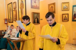 Его Высокопреосвященству сослужили: благочинный Барнаульского городского округа протоиерей Андрей Басов, врио ректора Барнаульской духовной семинарии иерей Анатолий Бочкар, руководитель отдела религиозного образования и катехизации протоиерей Сергий Фисун, духовник семинарии протоиерей Константин Гросс, заведующий Регентской школы протоиерей Максим Спиненко, и.о проректора по воспитательной работе иерей Иоанн Макаров, руководитель службы протокола Барнаульской епархии иерей Олег Берендеев, старший помощник проректора по воспитательной работе иеромонах Модест (Илюшин), помощник проектора по научной работе иерей Иоанн Ефимец, протодиакон Владимир Черных, диакон Николай Конев и диакон Евгений Максимов.