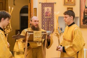 После отпуста Литургии протоиерей Сергий Фисун обратился к духовенству, учащим и учащимся и всем прихожанам со словом духовного назидания, он подчеркнул важное значение для распространения по всему миру Церкви Христовой проповеднических трудов и богословского наследия ныне прославляемых Вселенских учителей и святителей — Василия Великого, Григория Богослова и Иоанна Златоуста.