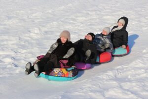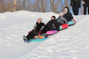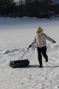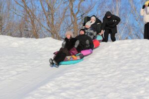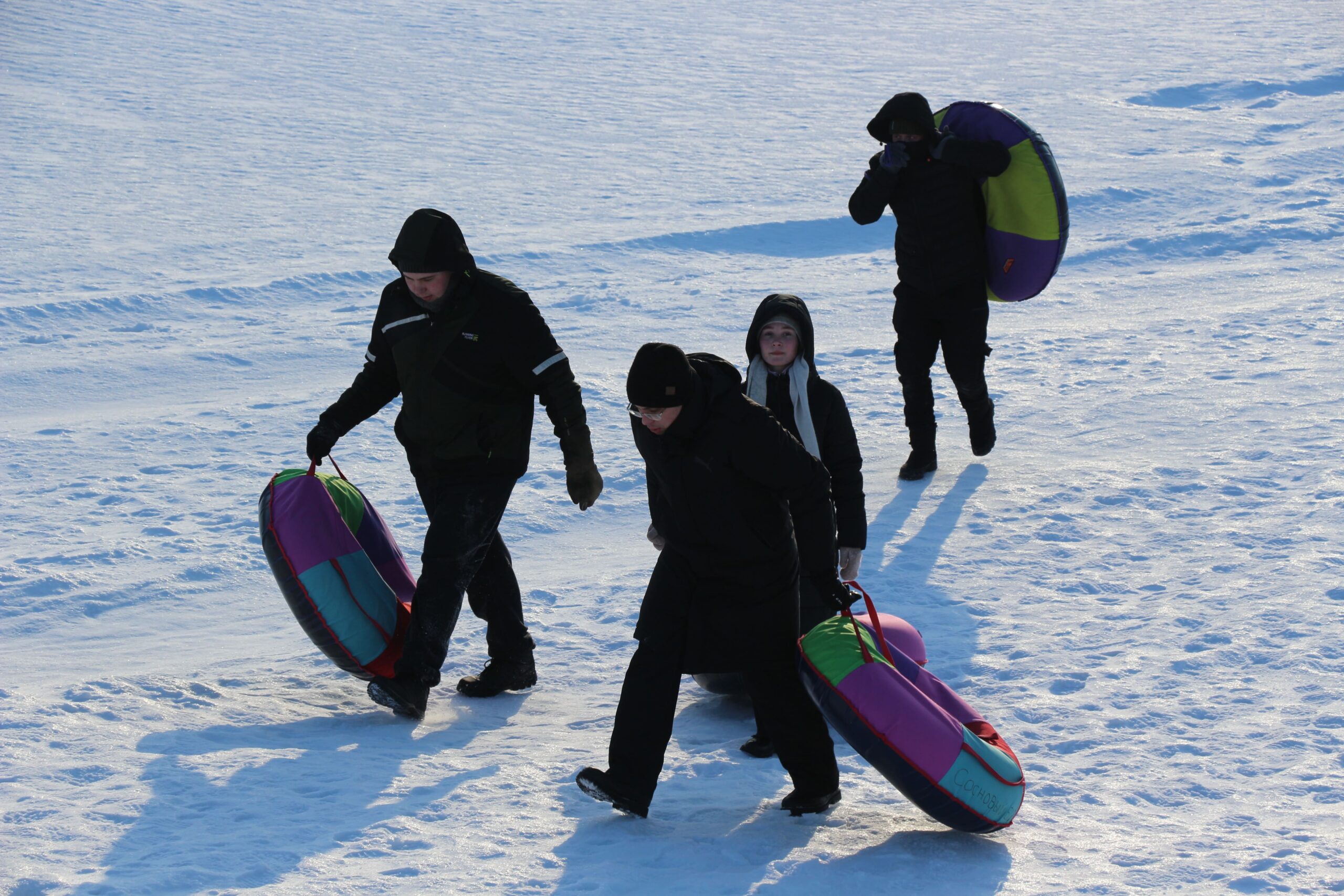 На базе ребят ждал настоящий калейдоскоп зимних развлечений. Каждый смог выбрать занятие по душе: лыжи, коньки, ледянки и шашлыки.