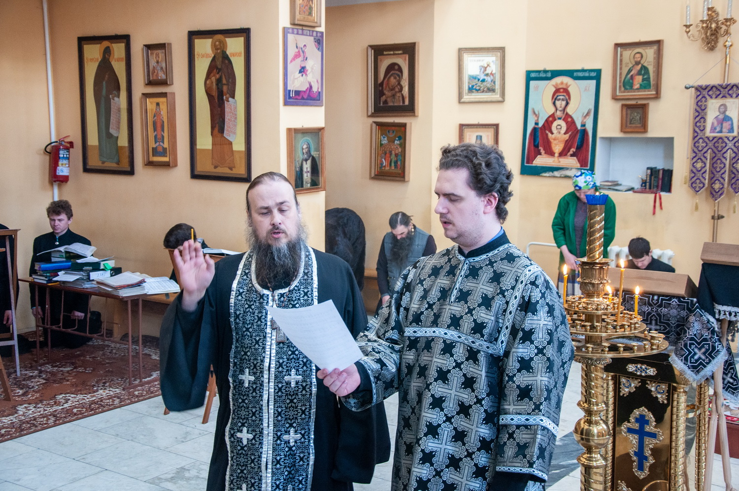 Утреню, часы и изобразительны совершили проректор по учебной работе иерей Алексий Изосимов и студенты 3 курса диакон Олег Вихлянов и диакон Евгений Максимов.