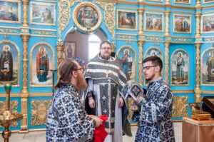 На Литургии архипастырю сослужили: проректор по учебной работе иерей Алексий Изосимов, руководитель службы протокола Барнаульской епархии иерей Олег Берендеев, руководитель информационного отдела иеромонах Модест (Илюшин), диакон Олег Вихлянов и диакон Евгений Максимов.