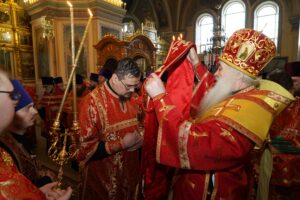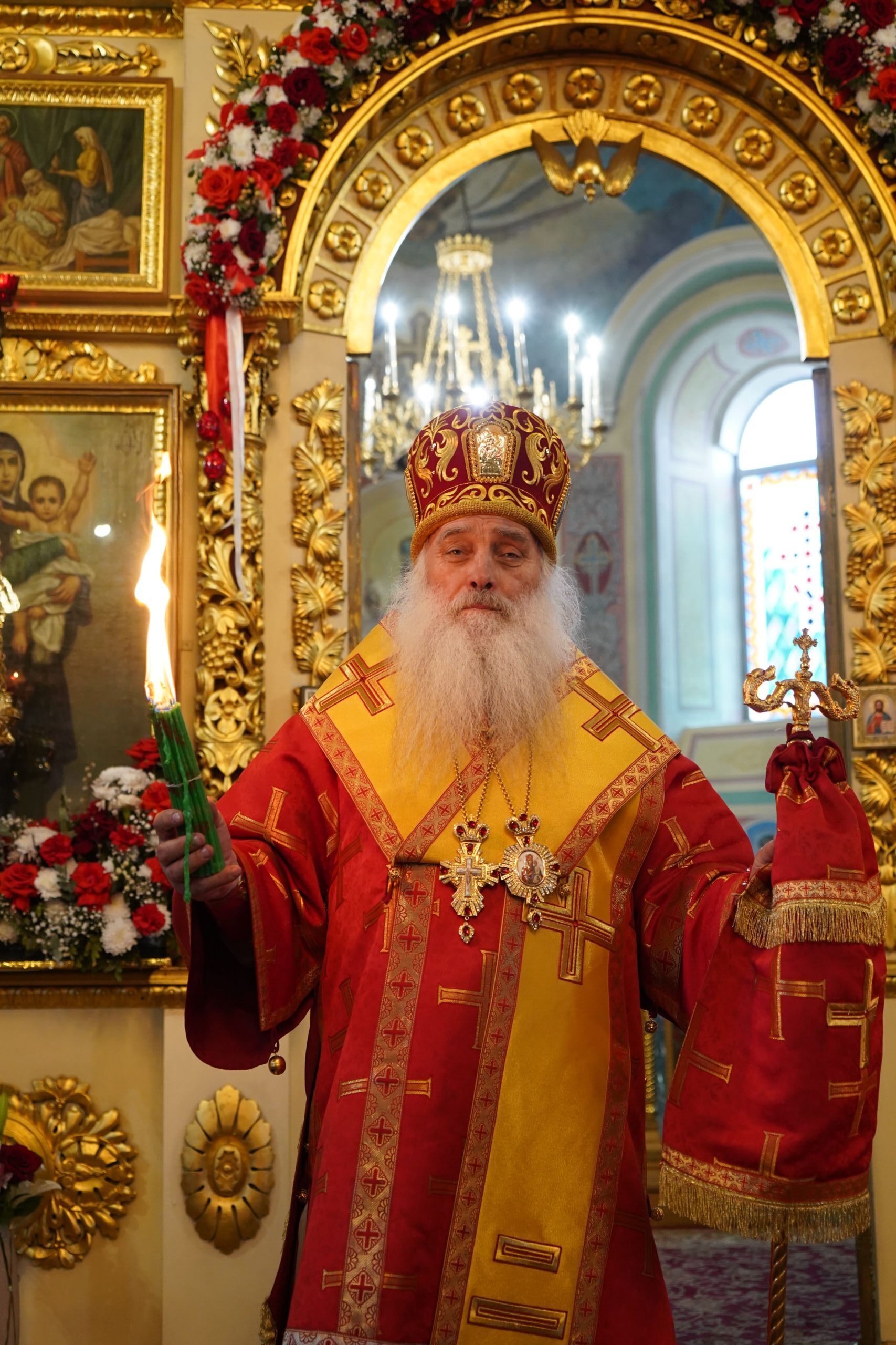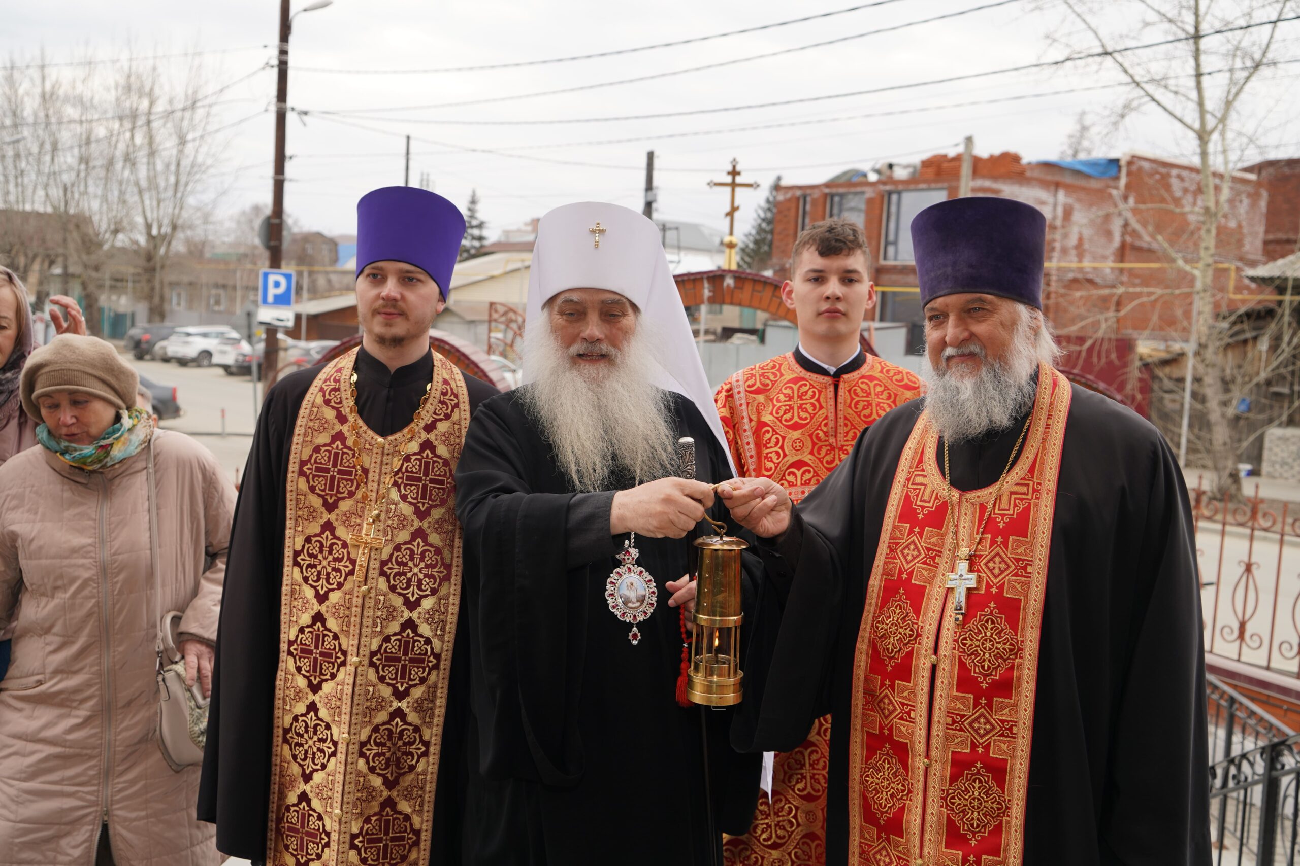 12 апреля 2026 г., в праздник Светлого Христова Воскресения, митрополит Барнаульский и Алтайский Сергий совершил Пасхальную великую вечерню в Покровском кафедральном соборе Барнаула.