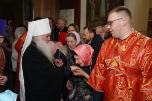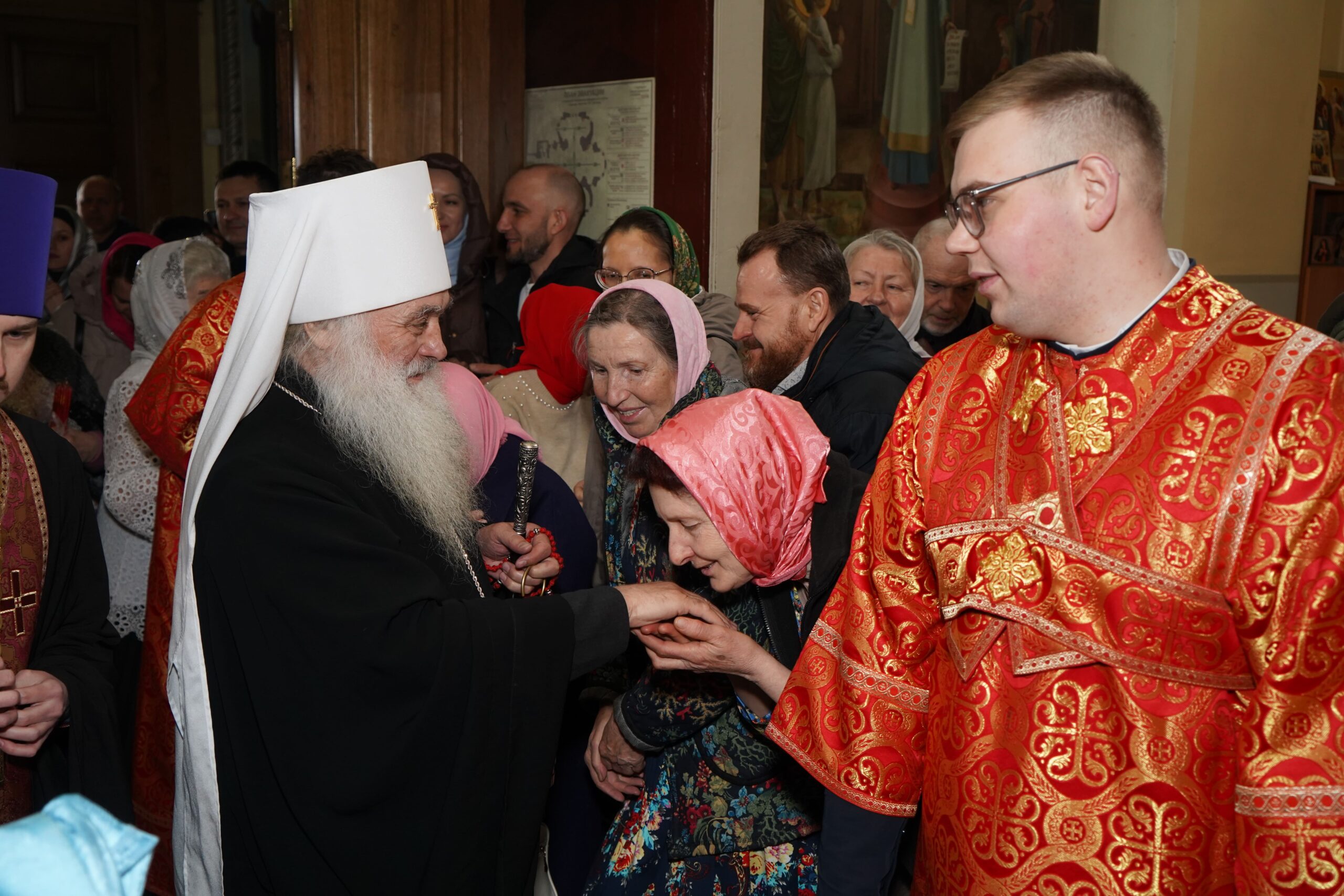 По окончании Пасхальной вечерни митрополит Сергий сердечно поздравил духовенство и мирян со Светлым праздником Пасхи.