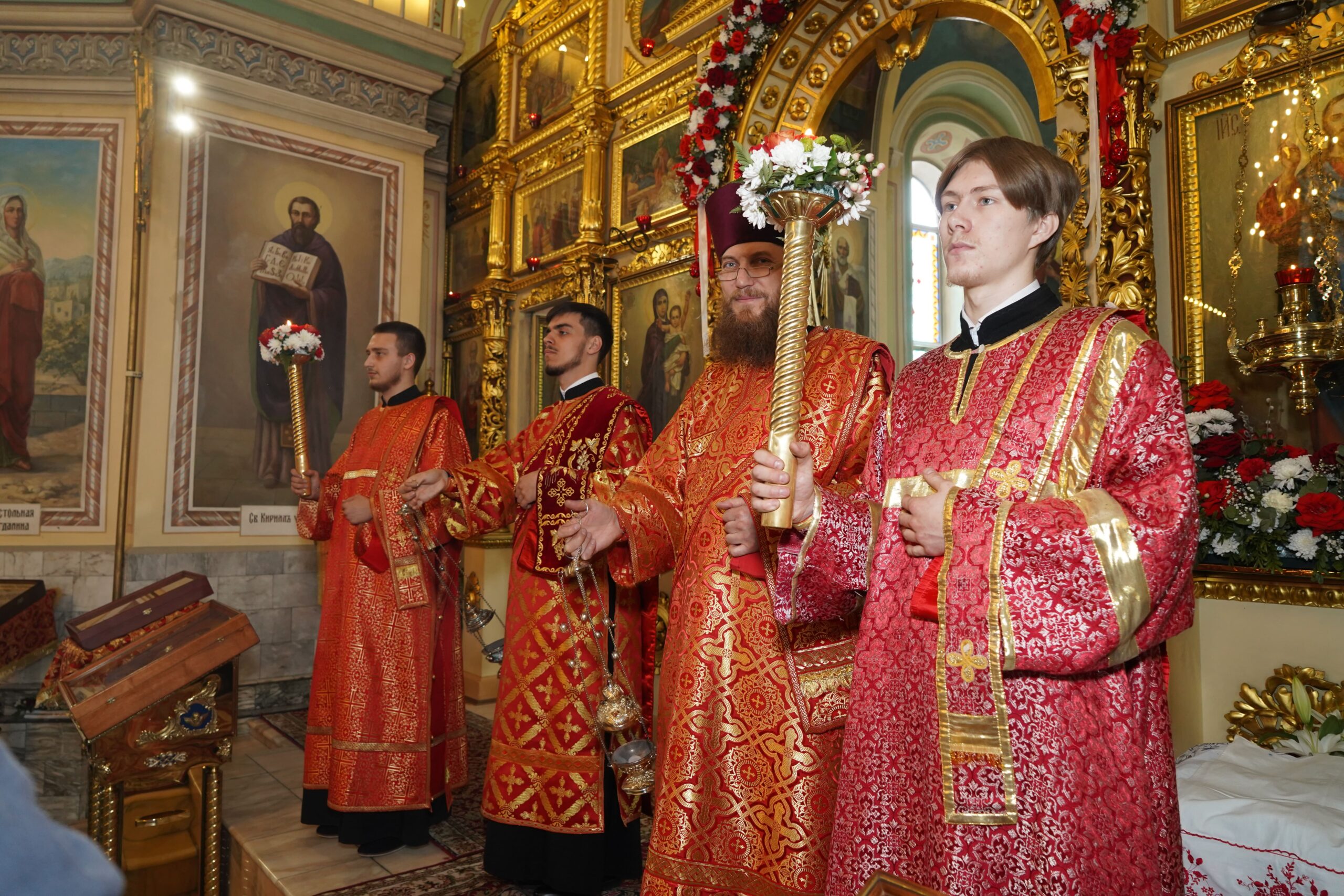 Его Высокопреосвященству сослужили сослужили секретарь Барнаульской епархии архимандрит Иларион (Морозов), врио ректора Барнаульской духовной семинарии иерей Анатолий Бочкар, благочинные, руководители профильных отделов Барнаульской епархии, духовенство, преподаватели и студенты духовной школы.