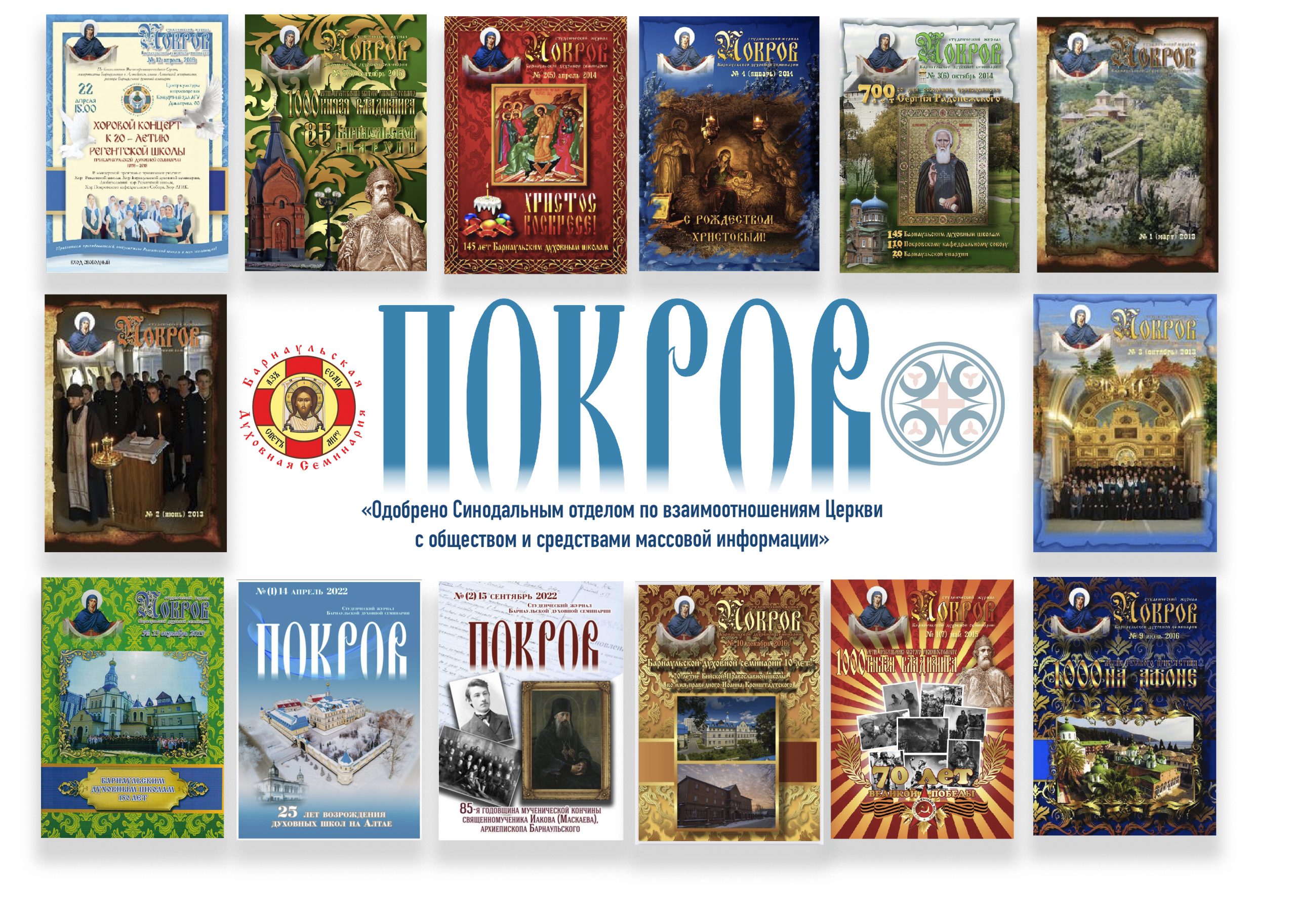 В марте 2023 года исполнится 10 лет с момента выхода первого номера журнала «Покров» Барнаульской духовной семинарии. Журнал был создан по благословению Преосвященнейшего Максима, епископа Барнаульского и Алтайского, ректора Барнаульской духовной семинарии до мая 2013 года.